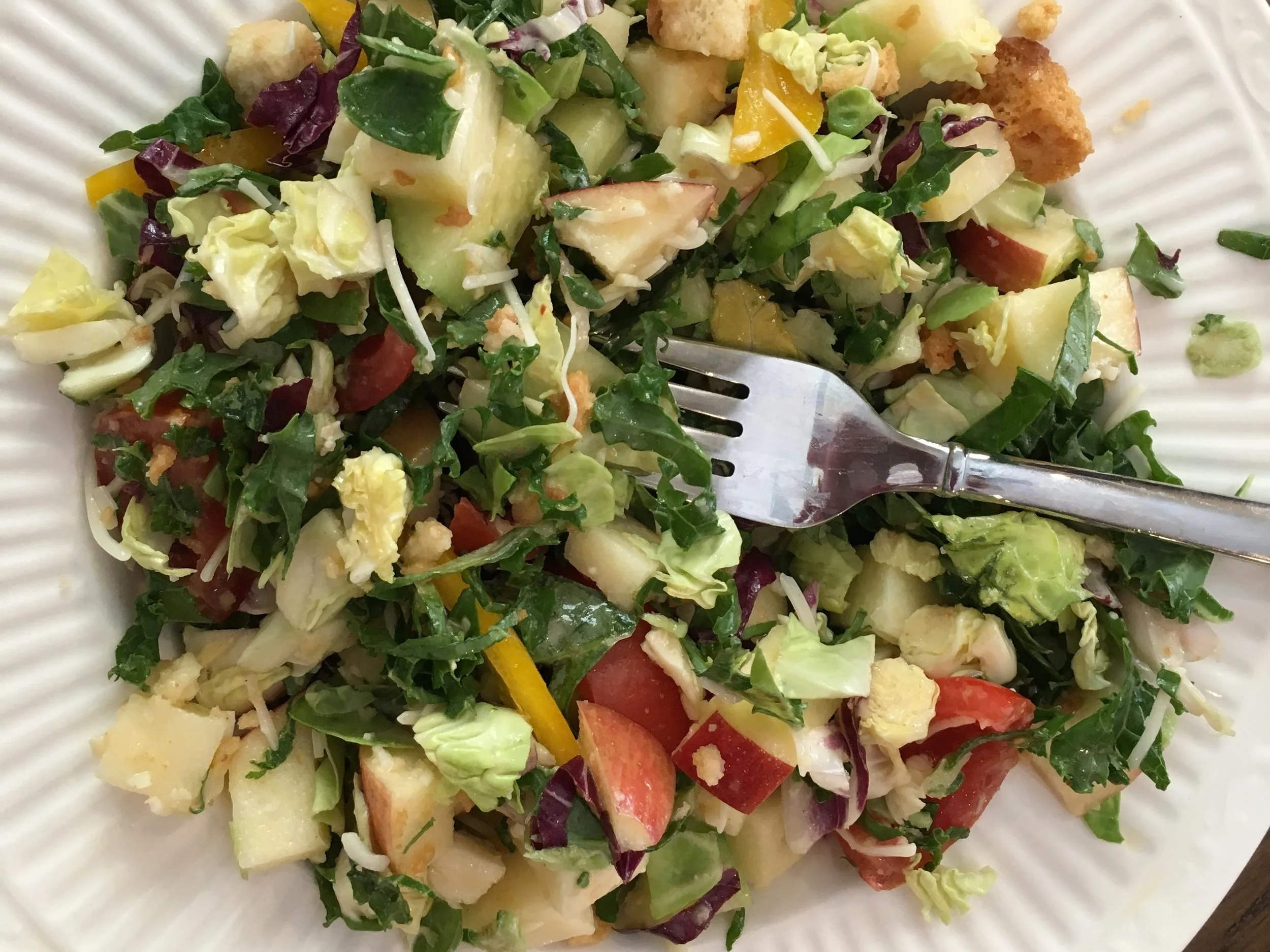 This time of year, the heat in the South is oppressive, and that really affects the appetite. Often, particularly for lunch, all I want is a hearty, cold salad. I start with a packaged kale salad kit because I like the little package of pine nuts and dried cherries. Then, I add a combination of ingredients that add color and flavor…