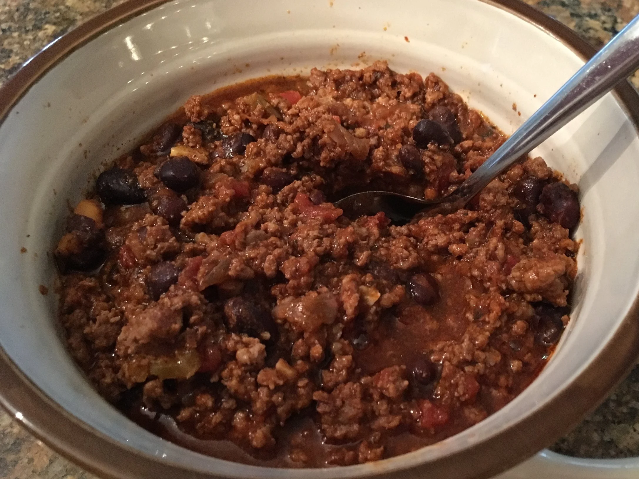 I started out the New Year with an itch to cook, and since I’m also watching calories, I’m focusing on soups and stews without cream. Chicken or beef broth, tomatoes, lots of vegetables, and seasonings give the dishes flavor without the fat. This chili is a longtime favorite, and in fact was requested by a blog reader who had just moved to St. Simons…